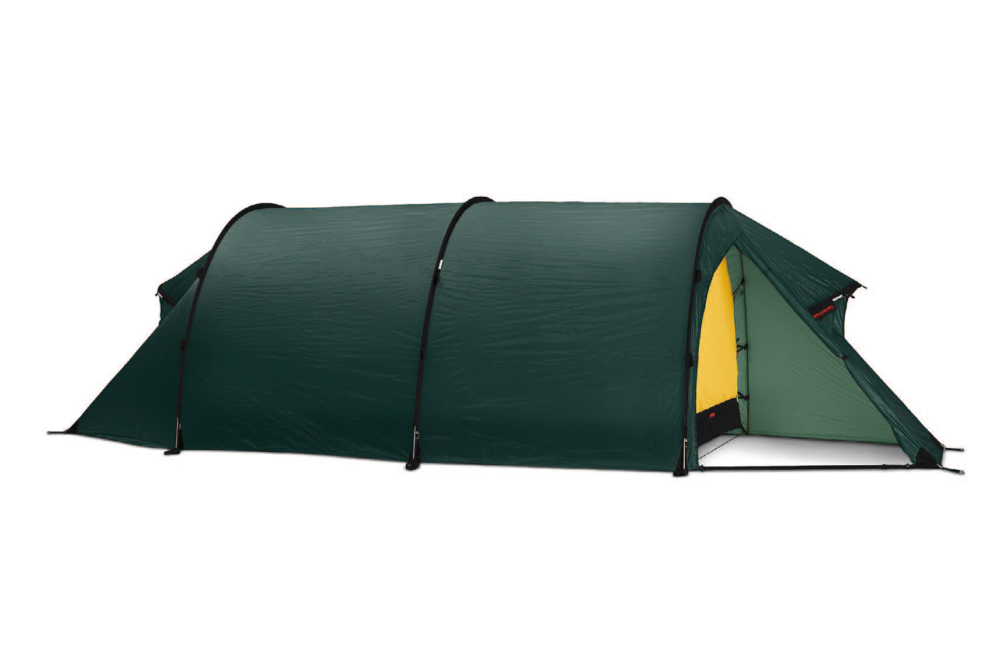 人気のヒルバーグのオールシーズンモデルテント。トンネル型テントとしてのファーストモデルでもあり定番商品だ。設営は簡単で、居住空間の広さも文句なし! フロアW220×H105×D160cm 収納サイズφ23×56cm 18万9970円