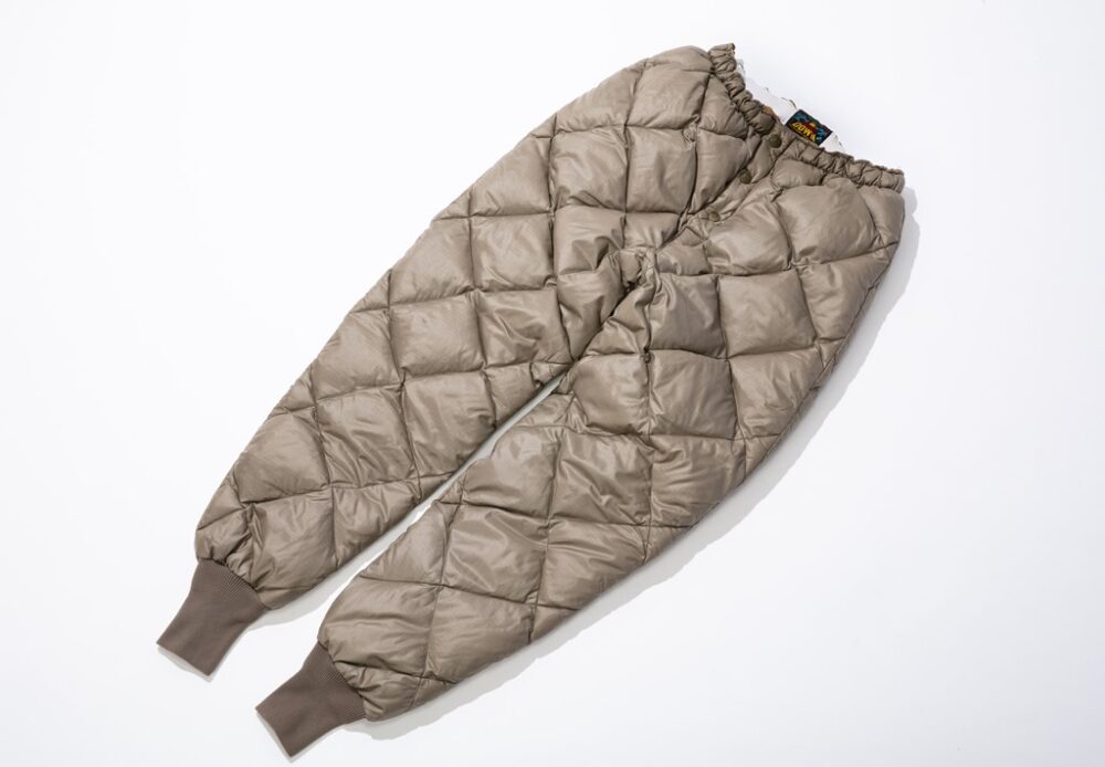 「落ち着いたカラーとダイヤキルトのルックスのよさに加え、ダウン抜けもなく保温性はいまだ抜群です。穿くとシルエットもキレイなので、キャンプはもちろん、普段の寒い日にも重宝していますね」