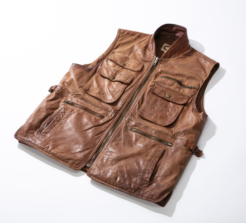 いい感じに経年変化したレザーベストは’80年代頃のモノ。