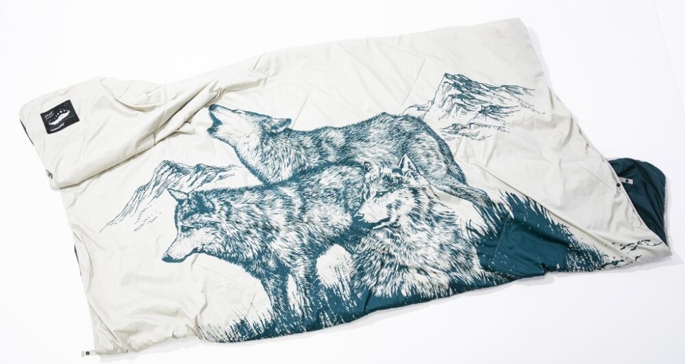 荒野の狼たちが大胆に描かれた大判ブランケット。