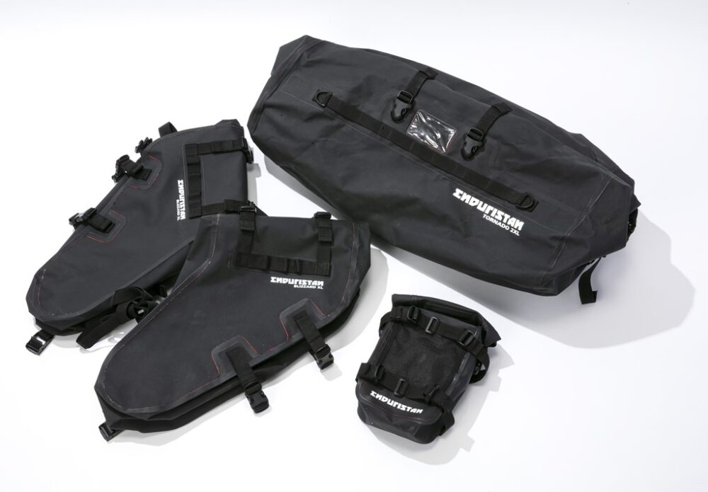 スイス生まれのモーターサイクルラゲッジ専門メーカー、エンデュリスタンの収納バッグ類はバイクに装着するもの。