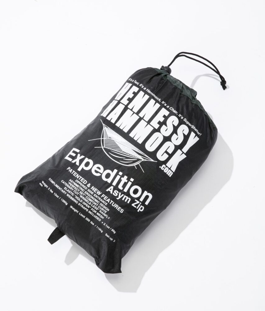 テント要らずのハンモックは、渓流釣りを趣味とする彼ならではの定番アイテム。