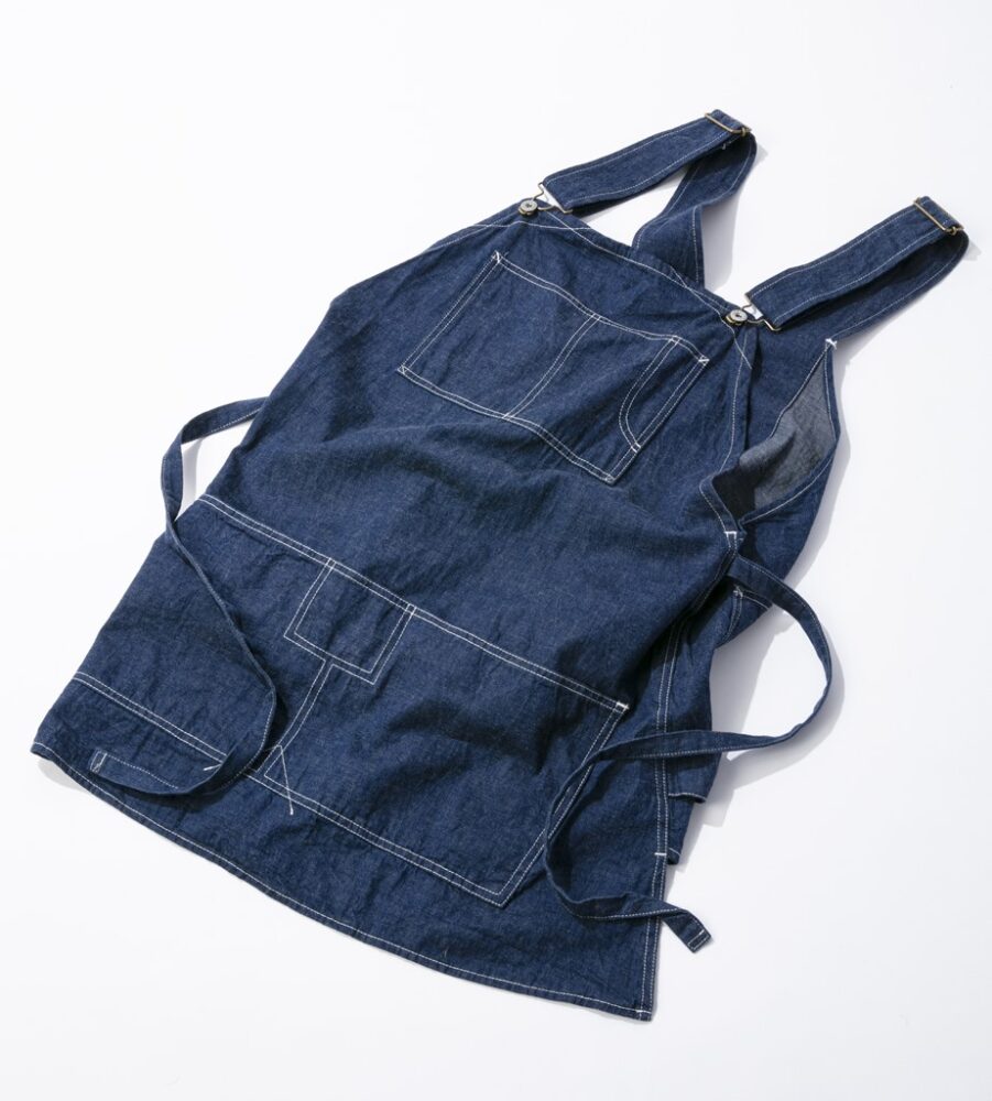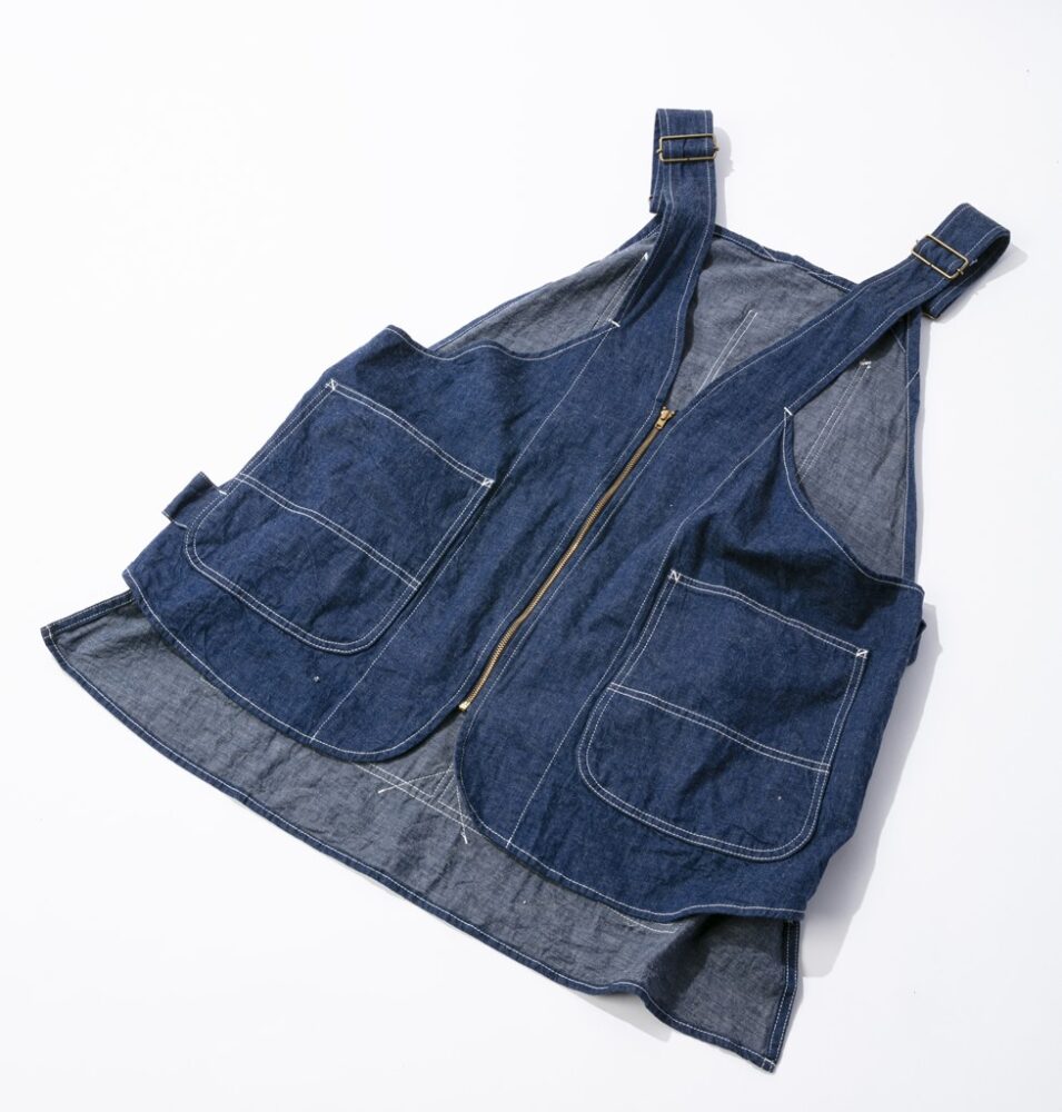 表裏でベストとエプロンのふたつの顔をもつユーティリティデニムエプロン。