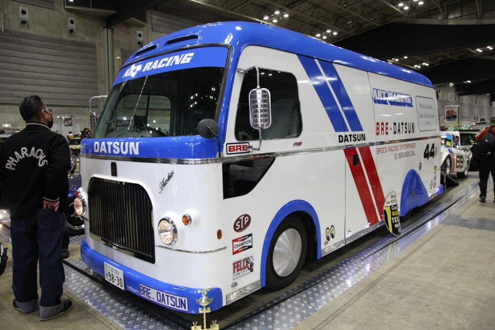 1991年式トヨタ・コースターをベースにクラシックなレース用のトランスポーターへと変身させた1台。レースカーも、それを運ぶクルマも作るアイデアに感心。