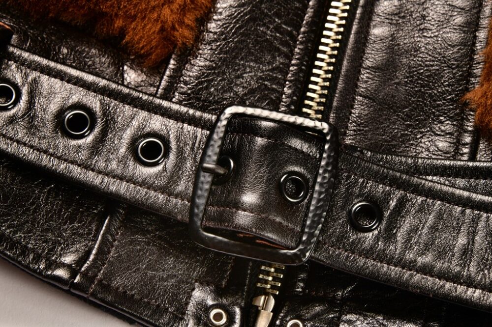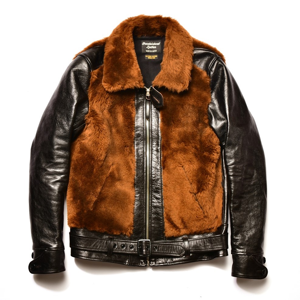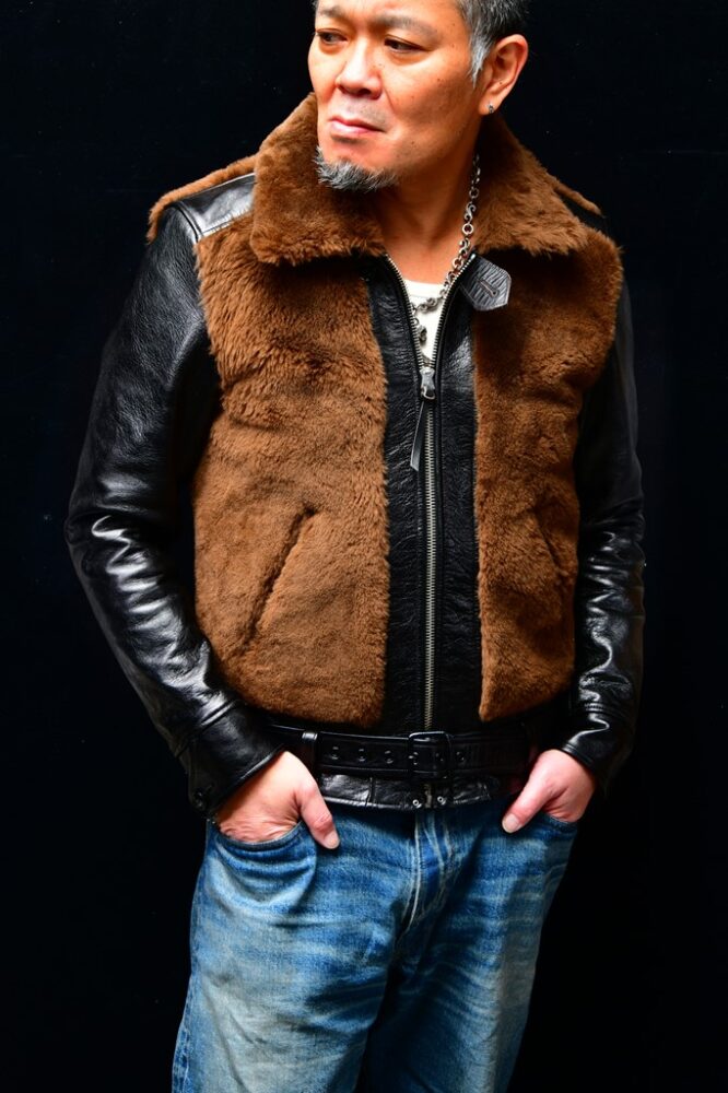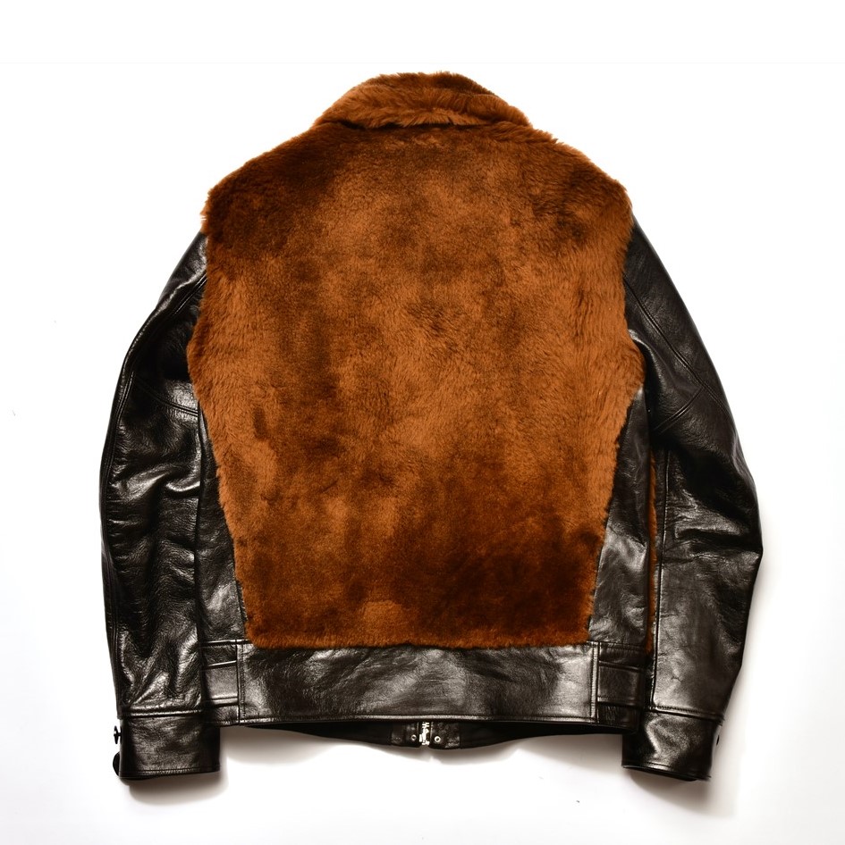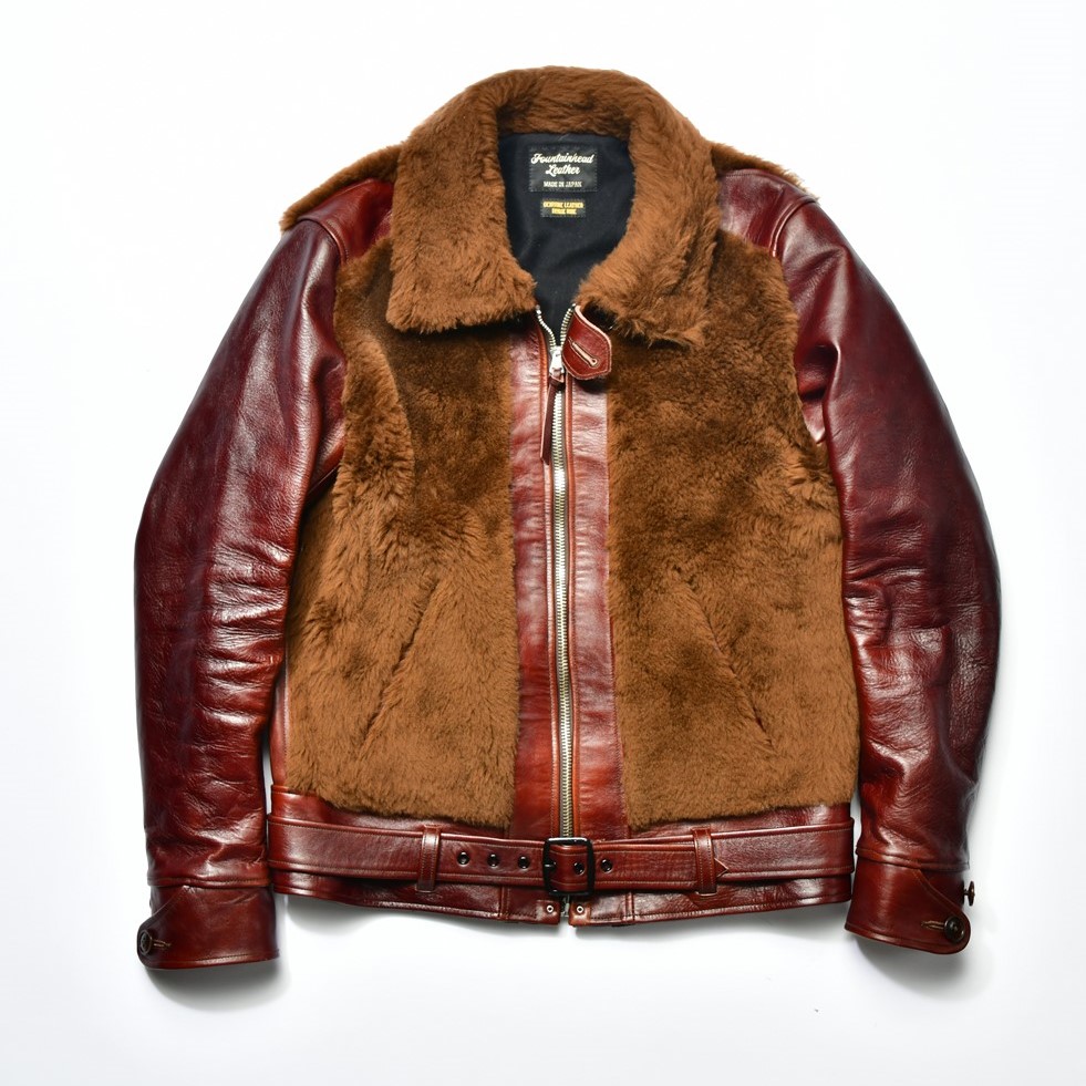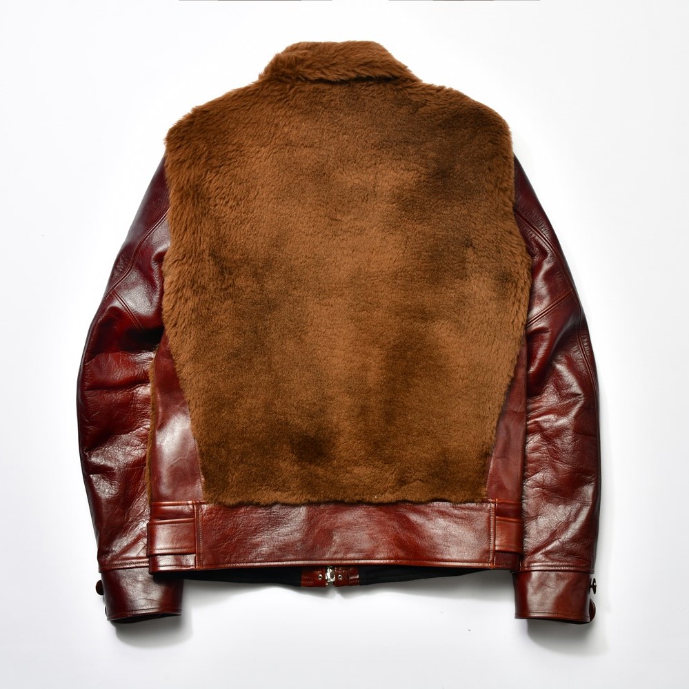 1930年代の熊ジャンをベースに、ファウンテンヘッドレザーならではの解釈で現代的に甦らせた意欲作「シータ」。厚みのある毛足の長いムートンと、1.5㎜厚の渋鞣し・顔料仕上げの馬革を採用し、ヴィンテージライクな質感を再現している。ハトメジップや、オリジナルで製作した鉄製打ち抜きバックルなど、当時のディテールを踏襲しつつ、着丈を伸ばすことでオリジナル特有の“丸まっこさ”を払拭し、スタイリッシュに再構築している。24万2000円