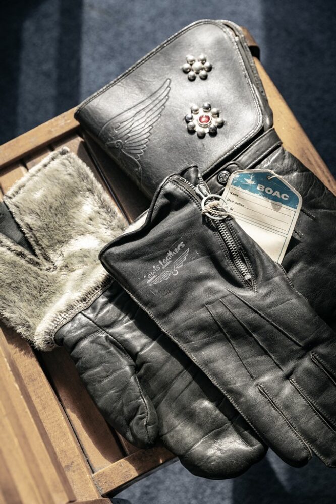バイクに乗る際に着用必須のレザーグローブ。「すべて1950〜1960年代頃のもので、左がアザラシ、中央がルイスレザーズ、右がブコのもの」