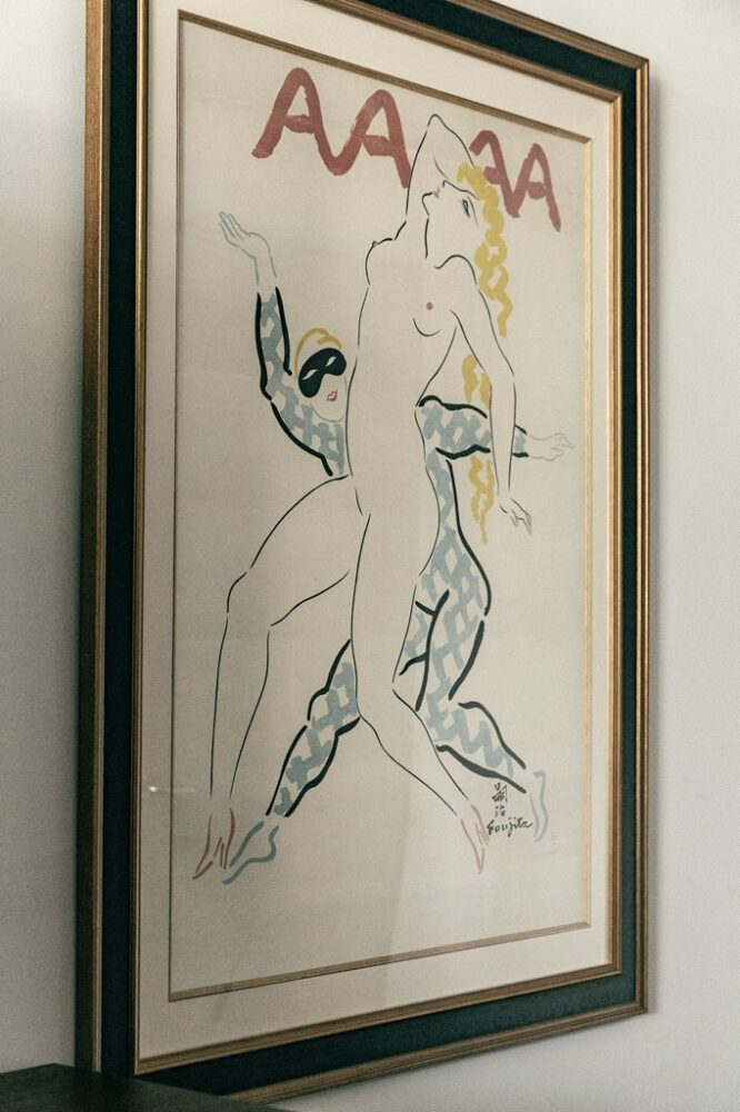 エコール・ド・パリ期の藤田嗣治のオリジナルリトグラフ。「1926年の作品で、左下にATTRACTIONSの文言が書かれない希少なもの」