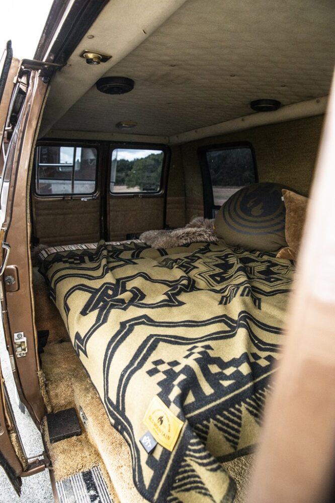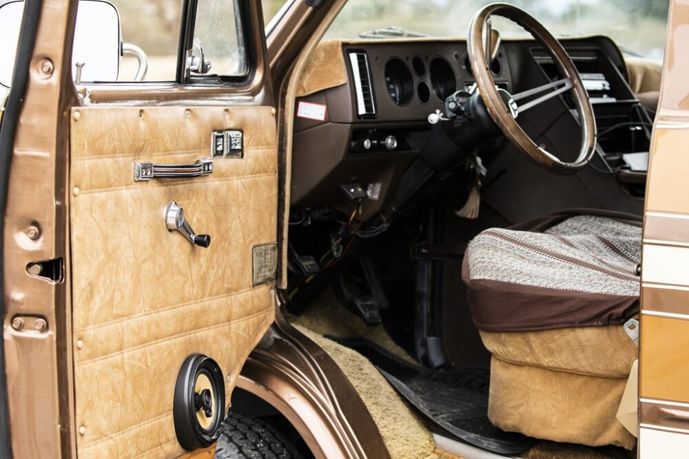 1980年製のシボレー・シェビーバン20は、ブラウンの同系色で仕上げられたカラーブロックに一目惚れして購入。窓の位置なども個性的で、なんとも美しい。
