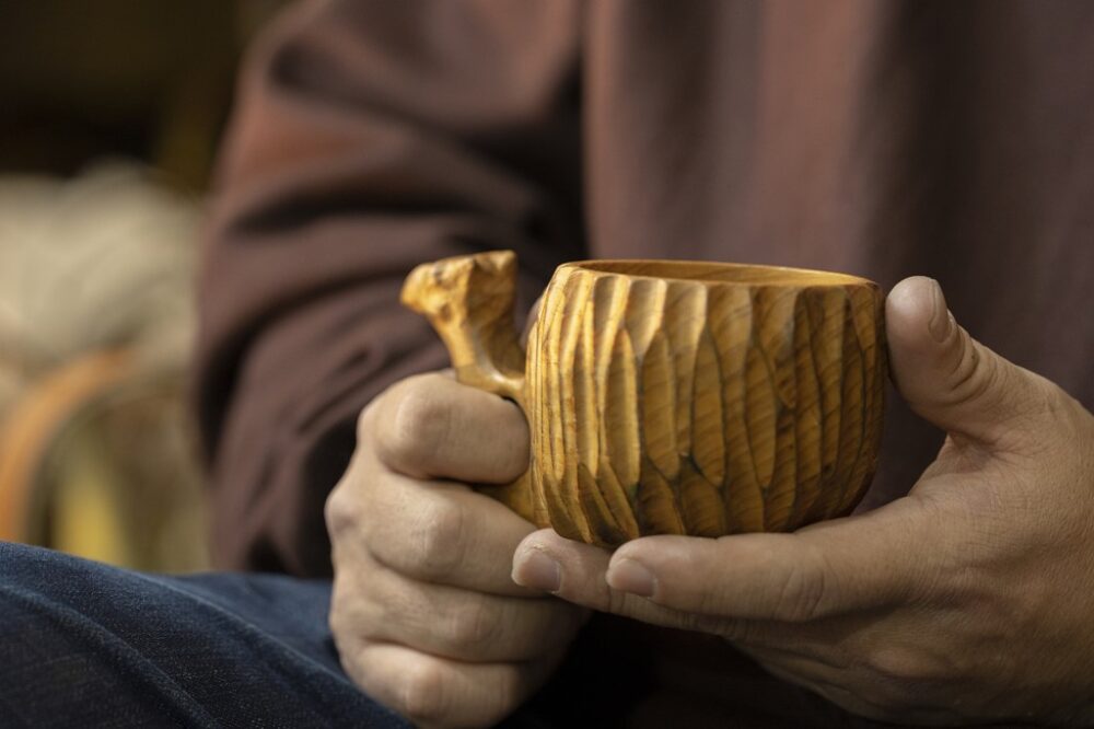 オールドマウンテンのアイコン的な存在であるヒノキ製のカップであるラクサ。和歌山の職人によるハンドメイドでラクダをモチーフにしている。