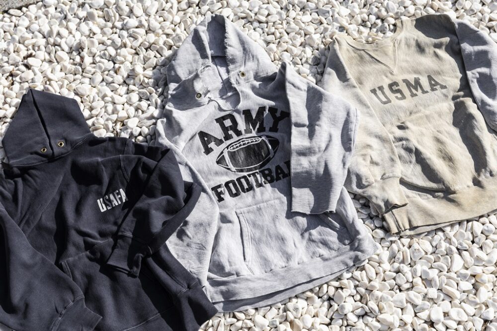 もともとヴィンテージショップのバイヤーとして活躍していたので、多くの古着を所有。チャンピオンのリバースウィーブは、ミリタリーものをピックアップ。
