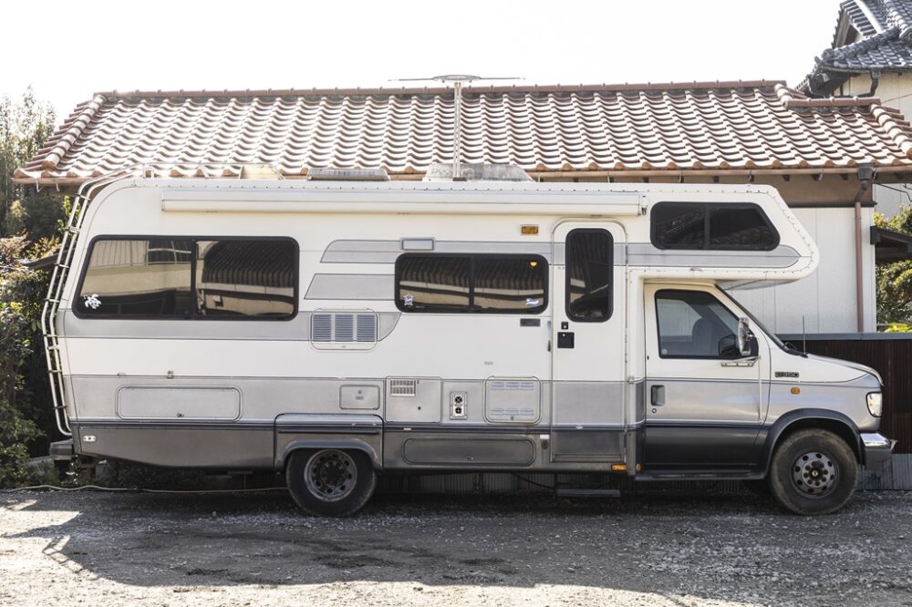 和歌さんがリノベーションを手伝う際に寝泊まりしているのが、1996年製のボナンザ・レイジーデイズ。中にはベッドもあり、モーターホームの正しい使い方を実践している。