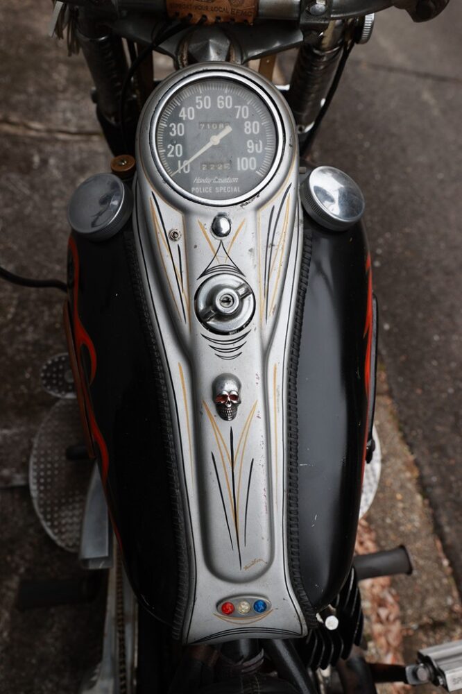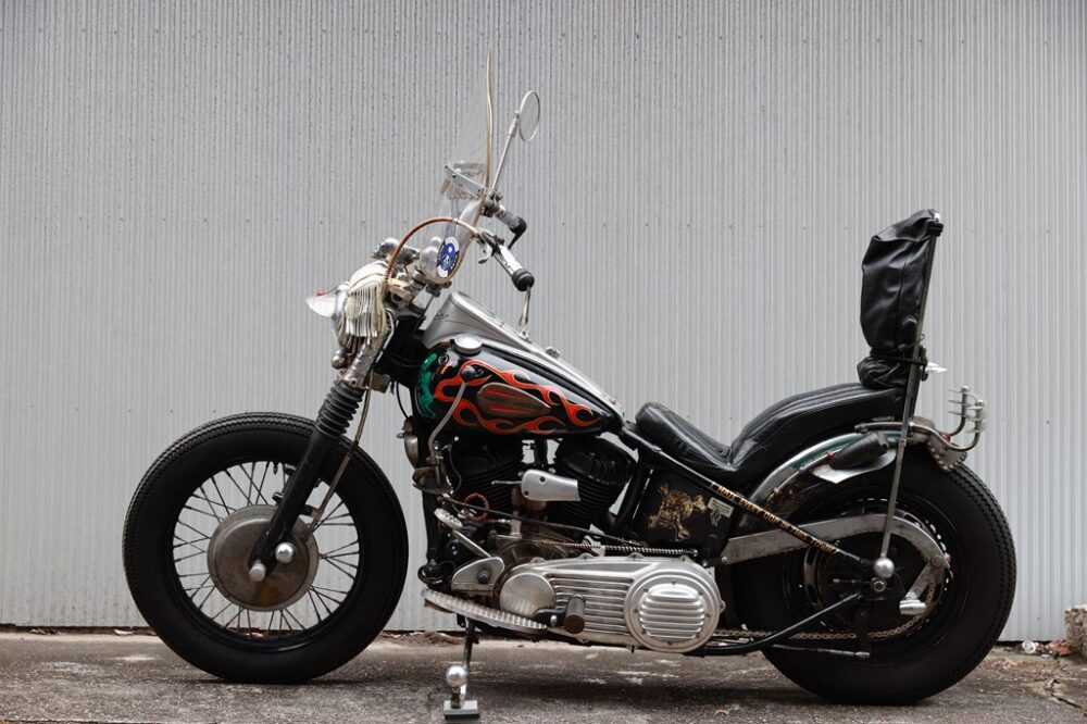 1937年式ハーレーダビッドソンModel Uをベースにした「Speed Ball」。ドレッサーの名残りがある、ボバーからチョッパーに移り変わる前のスタイル。