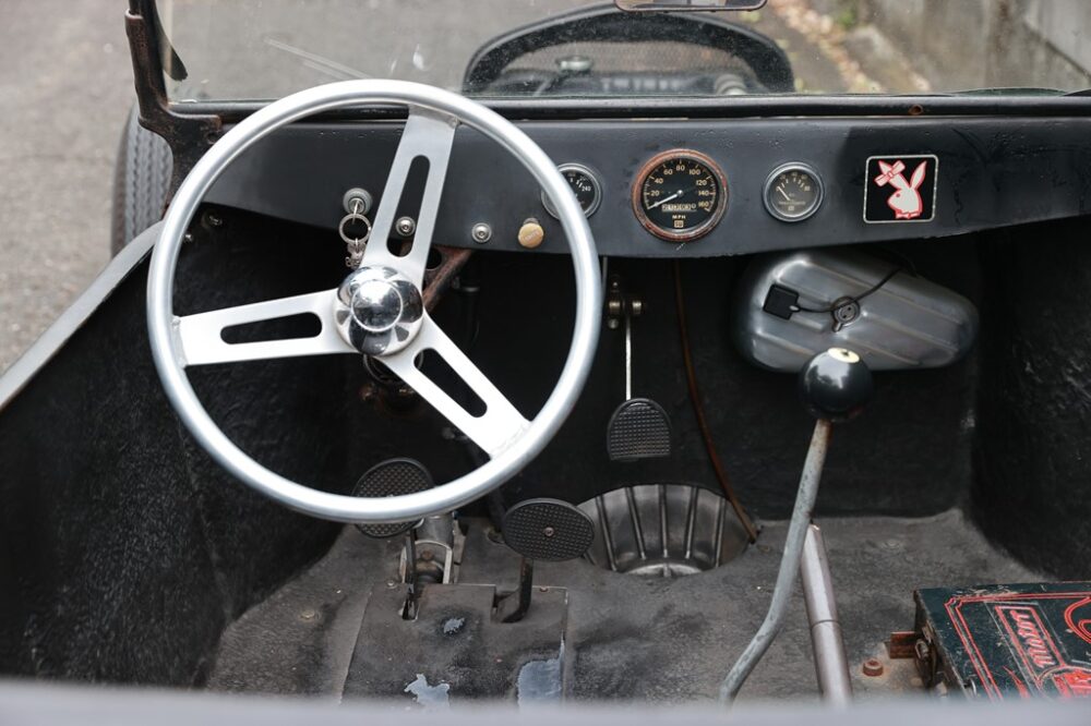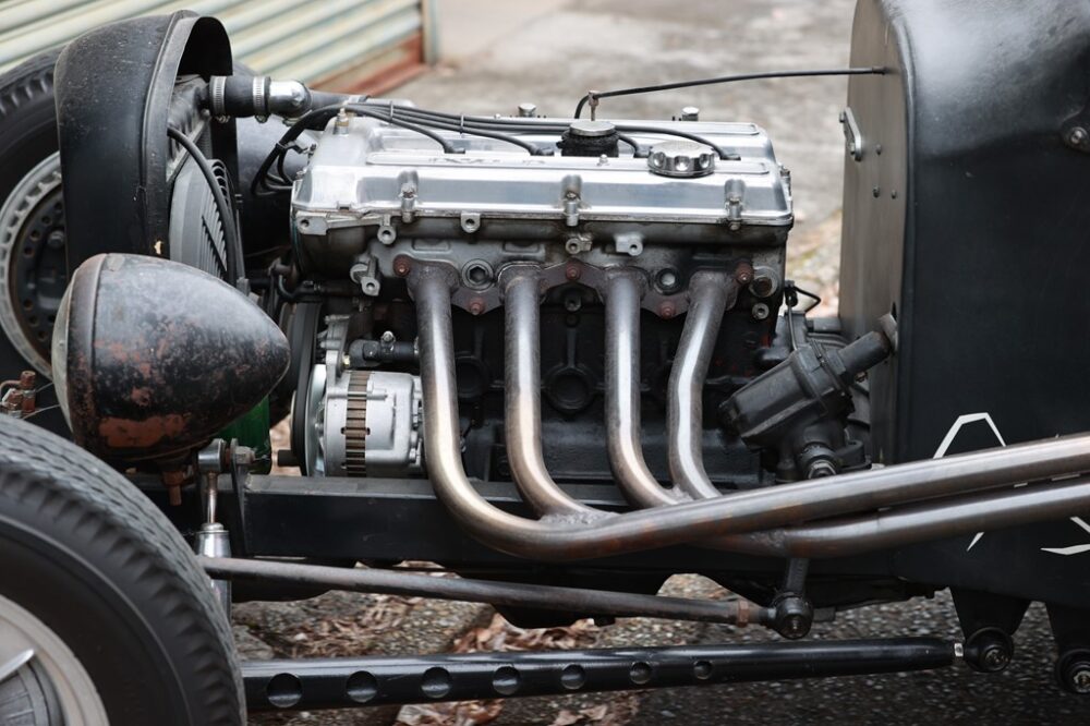 エンジンは’70年代のコロナに使われていたトヨタの18RG。ミッションは旧いスープラの5速ミッションで「めちゃくちゃ速い」そう。