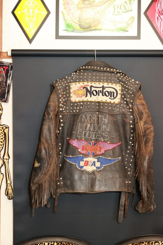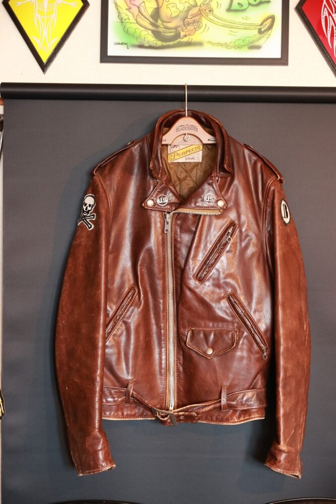 ’50年代のSears製ヘラクレスダブルライダースジャケット。友人にペイントしてもらったという背中のロゴとスカルのグラフィックがポイント。