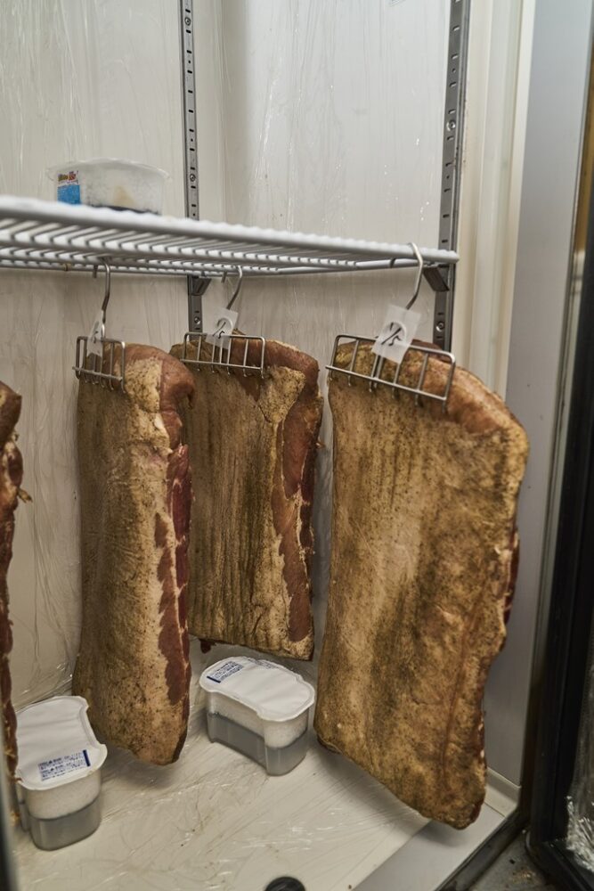 ダブルパティと2種類のチーズを挟んだハンバーガーに、2週間かけて作った自家製ベーコンを2枚トッピングしたわんぱくなハンバーガー。がっつり食べたい人におすすめ。
