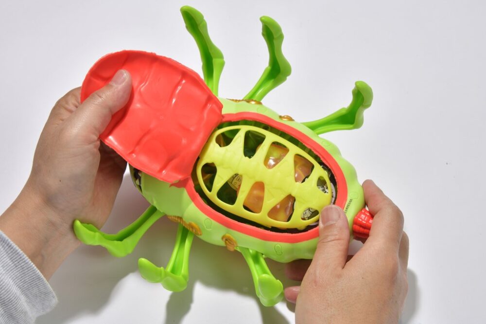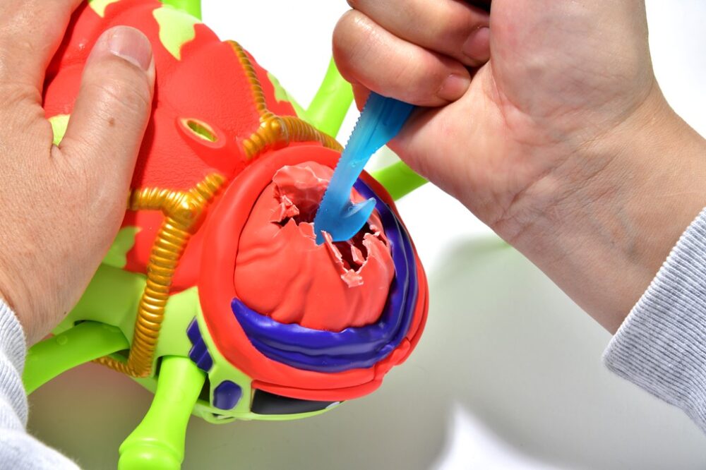 付属のナイフで解剖を楽しむ、グロテスクなアメリカントイ。