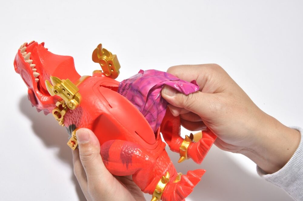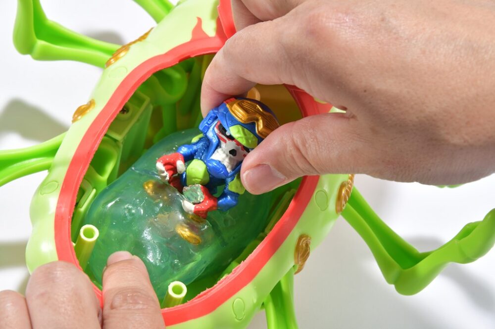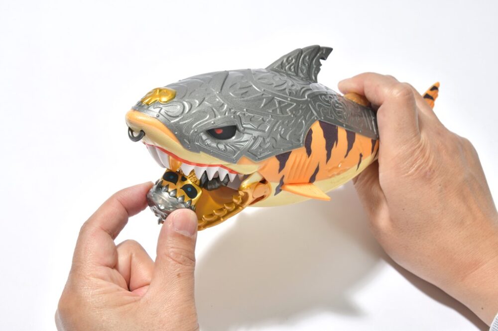 エイリアンや恐竜、サメに飲み込まれたトレジャーハンターを救い出し、同じく飲み込まれたアイテムやパーツを体内から探し出し、それらを装着してバトルモードに進化させるのがミッション。またシークレットとして財宝も隠されており、商品によって異なるアイテムが隠されている。
