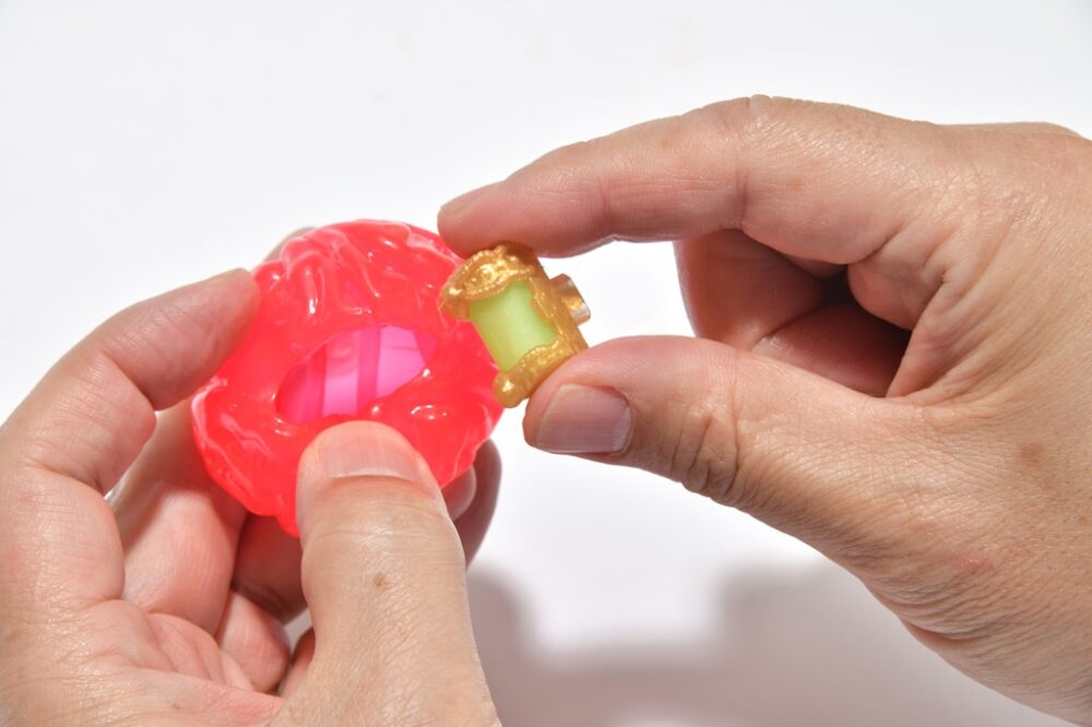 ブニュブニュした手触りの脳の中からシークレットを発見。武器に取り付けるパーツでグローインダーク仕様だ。