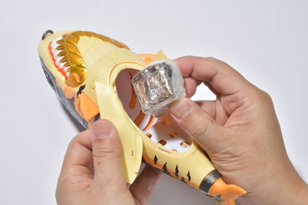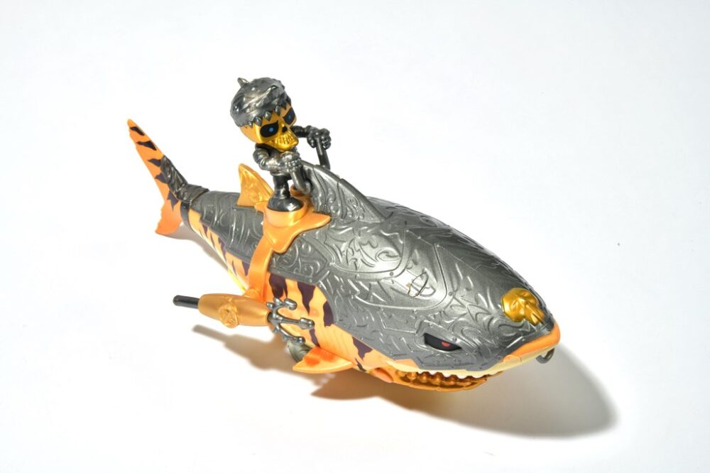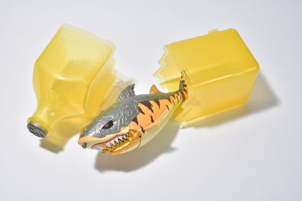 鉄の鎧をまとったサメのお腹の中を捌いてトレジャーハンターを救出。各アイテムで武装すれば「バトルシャーク」に変身。市場価格5680円