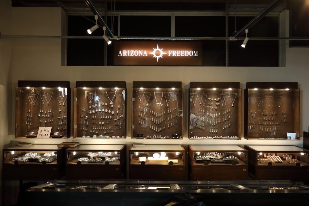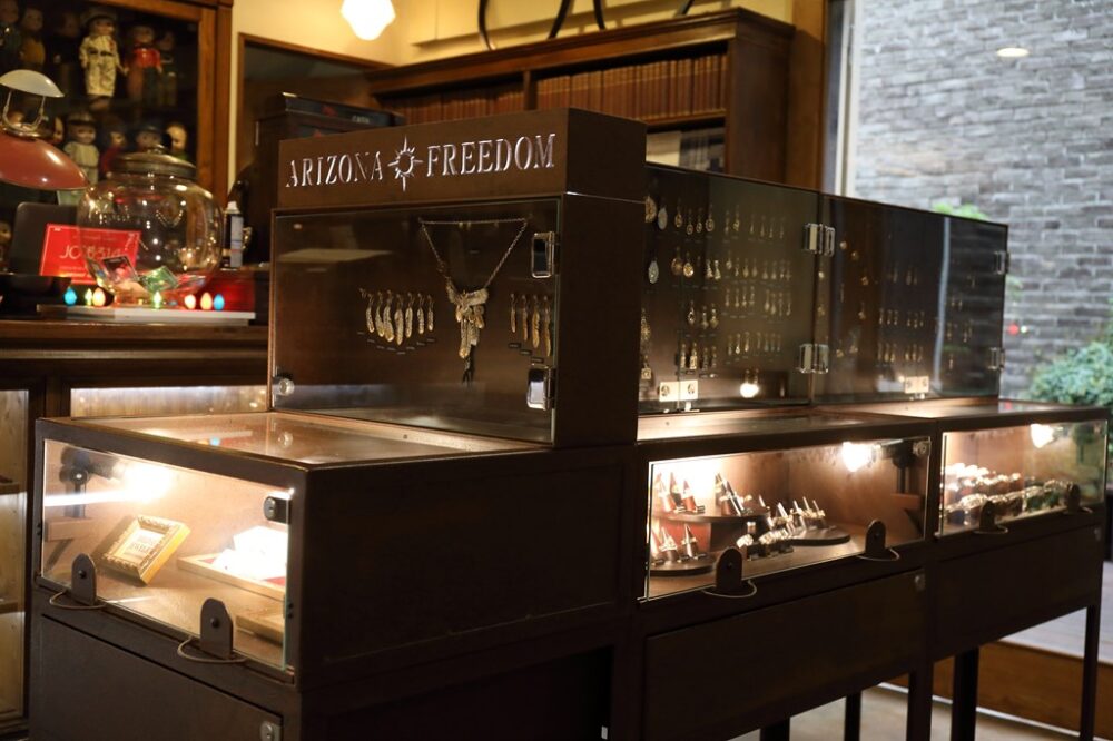 関東圏のベッドタウンとして人気の高い人気の群馬県伊勢崎市にある「ラッシュバレー」。27年前に古着店としてオープンし、本物のシルバーアクセサリーを扱いたいとアリゾナフリーダムをセレクトするようになり、はや四半世紀。同ブランドの黎明期から取り扱い、現在は直営店に近いラインナップでショッピングを楽しめるとあって、人気を集める老舗ショップだ。