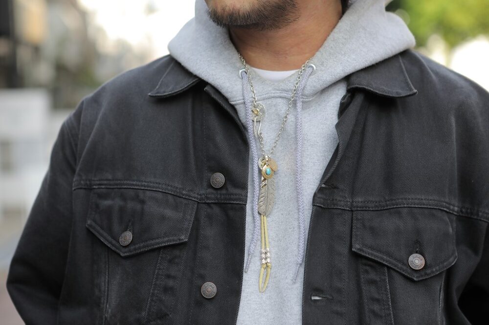 モノトーンをベースにシルバーアクセサリーで、さりげなくアクセントをプラス。組み合わせもワントーンでカッコよさが引き立つ。