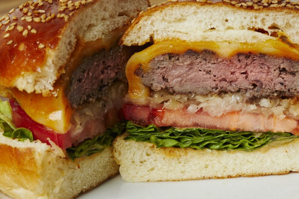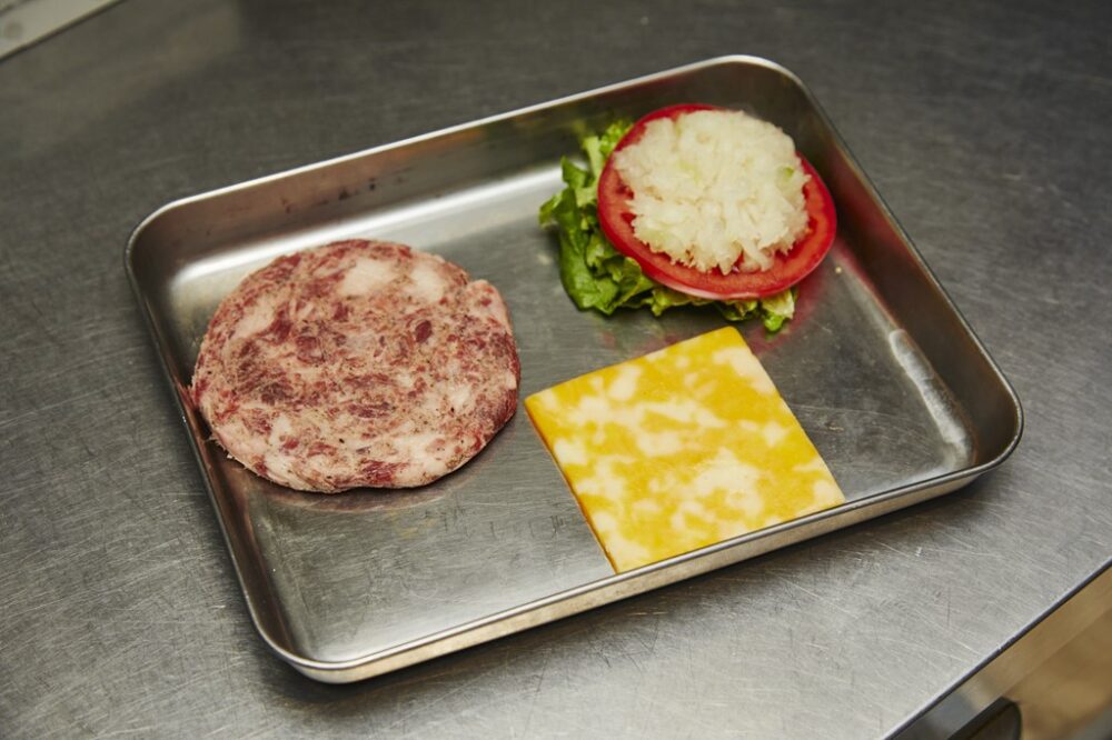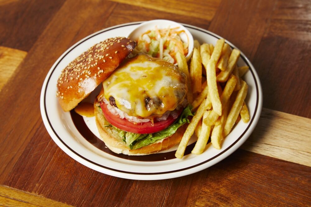 店内でこねられたオリジナルのパティ、フレッシュな野菜、アメリカ生まれのマーブルチーズで構成される。