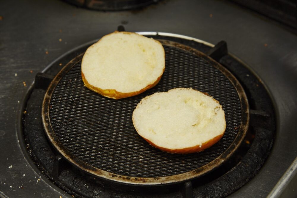 焼き上げた時の香りや色味を重視して、備長炭をセレクトしている。バンズはチャコールグリルだと焦げるので、オーブンで丁寧にトーストしている。