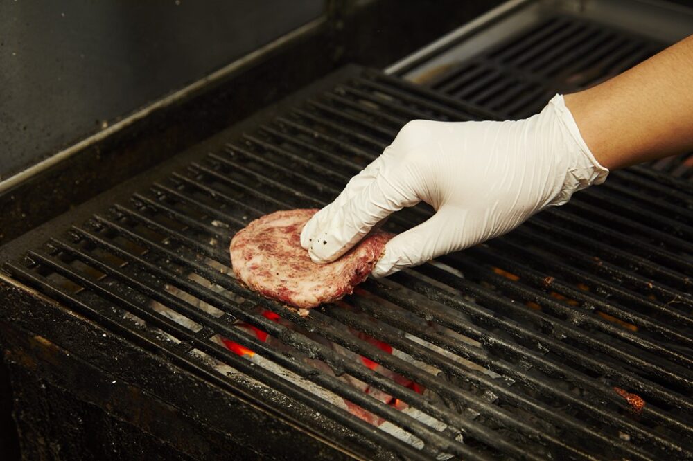 「一番は、オージービーフと和牛の脂を使った牛肉100%のパティですね。普通のお肉屋さんではできない大きめの粗挽きを特注しているので、まるでステーキのような食感を味わえます。それを備長炭を用いたチャコールグリルで焼き上げるので、余計が脂が落ちて、ボリューミーだけど重くないと評判を頂いています。