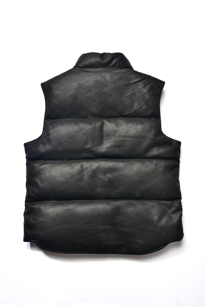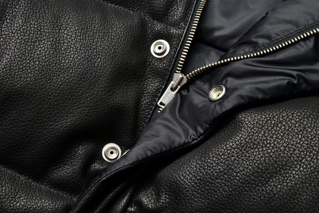 LAWは、鹿革のシボ感を存分に楽しめ、かつダウンベストの“バフバフ感” を実現するため、革を薄く漉いているのが特徴。革が厚いとダウンを押さえつけてしまい、ボリュームが出ないのだ。非常に軽量で、レザーonレザーにはもってこいのダウンベストと言える。