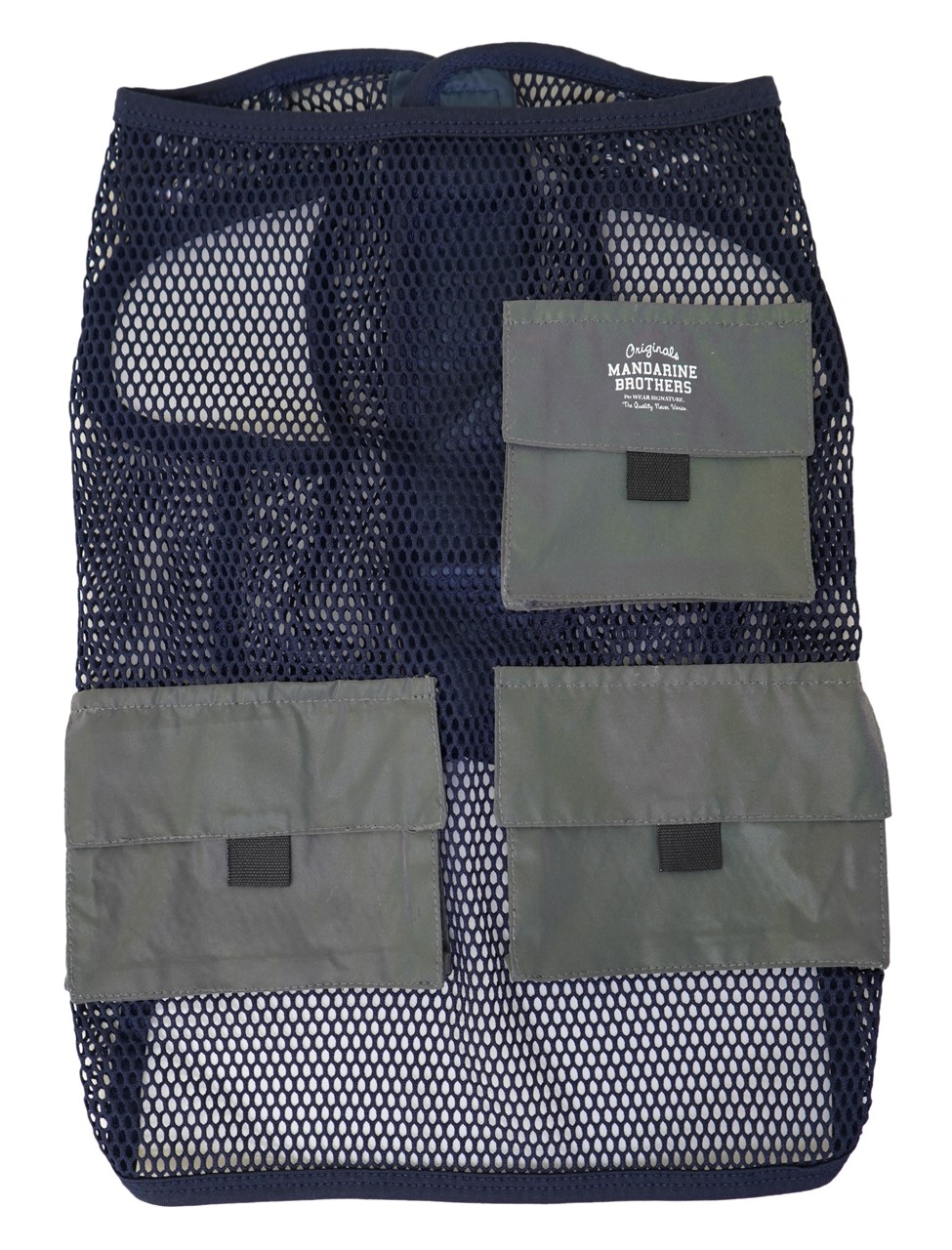 「タイトスーツとの重ね着ができますし、ポケットがついていて小物をしまえるのも良いですね。リフレクター仕様っていうのも気が利いてるなと思います。夜の散歩にはすごく便利だし、メッシュベストだけでも着れるので、ファッション性も利便性も兼ね備えた一着に仕上がってますね」