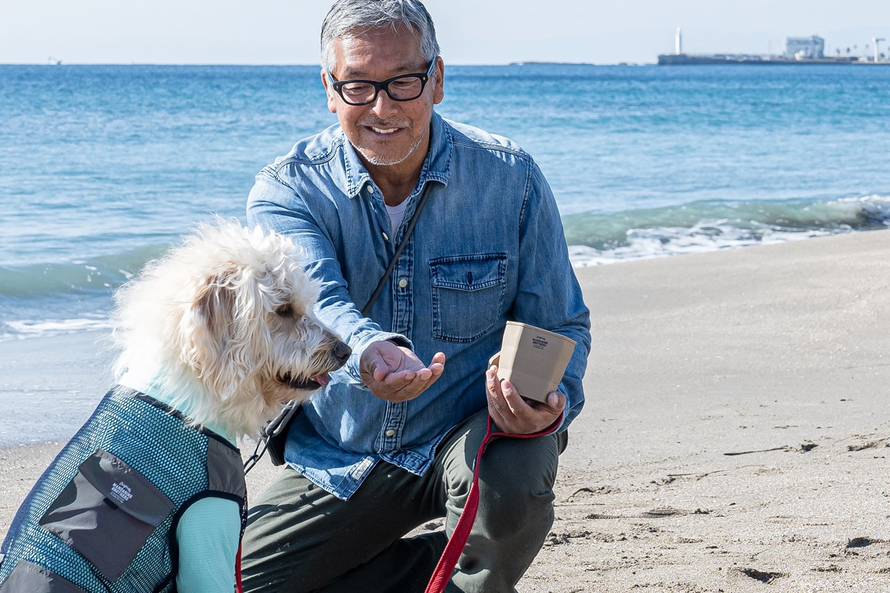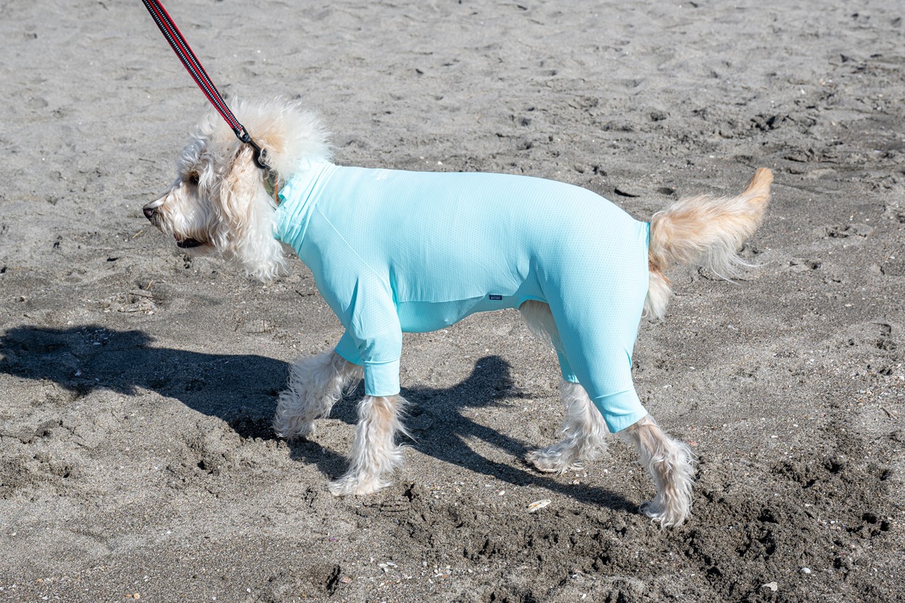 「海の近くに住んでる自分には、ものすごく重宝します。犬種にもよりますが、かなり砂が入ったりするのでシャンプーの回数が減っていいなと。あとは山へ行った時の防虫にもなるから、これからの暖かくなってくる季節に持ってると便利ですよね。