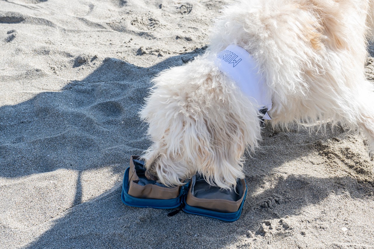 「夏に向けてみんなが重宝するギアだと思います。専用のクーラーは幅も広めでぴったりハマるから、いろんなところを冷やせますね。フードボウルは水だけじゃなくフードも隣にも入れられて便利ですし、ジップを閉めてコンパクトに畳んでしまえるところも清潔でいいと思います」