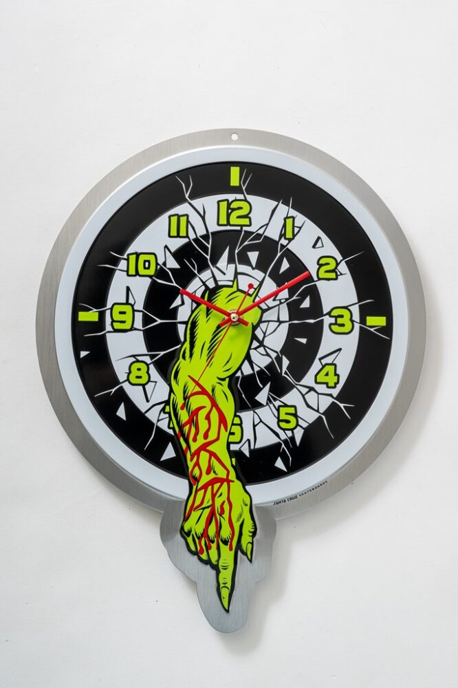 同じくジム・フィリップスのアートの中でも名作と名高い、ロスコップ ワンのグラフィックが象られた壁掛け時計。エンボス加工とプリントで仕上げられたどこか可愛げのある一台は、アートやスケート好きだったら、是非とも部屋に飾っておきたい。7150円