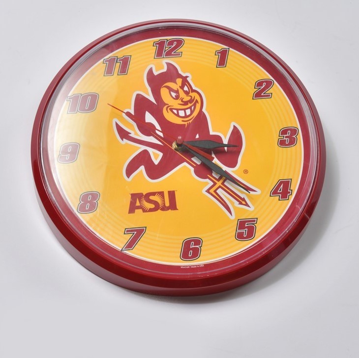 アリゾナ州立大学(ASU)のマスコットキャラクターであるスパーキー・ザ・サン・デビルを描いた’90年代製の壁掛け時計。このキャラクターはディズニーに所属していたイラストレーターが手掛けたもので、アメフトから野球、バスケットボールなどASUの様々なゲームに登場する。8500円(サウンズグッド TEL03-5433-3758)