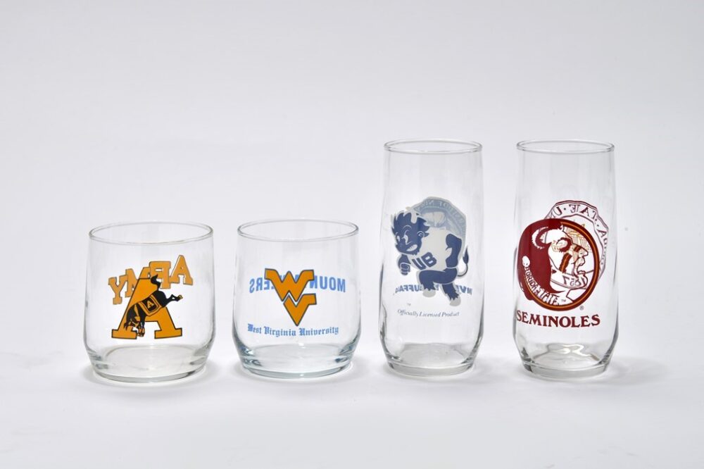 ’80 年代製のカレッジロゴ入りグラス。ちなみに一番左だけ陸軍士官学校の物。2090円~ 3850円(グレース TEL03-6416-3457)