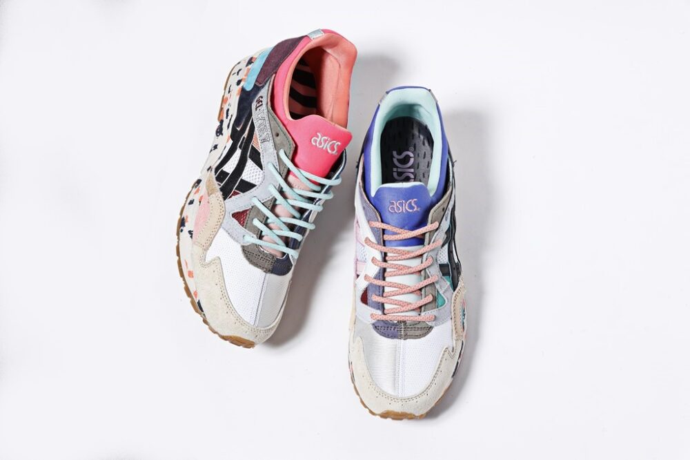 1993年にリリースされたランニングシューズであるゲルライトファイブをベースに、日本の古着や古布からインスピレーションを得たデザイン。岡山デニムとフライトジャケットのナイロンをオーバーレイ。1万5400円
