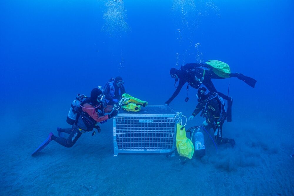 海中熟成は最近、あちこちで行われているが、上野さんが選んだのは南伊豆の穏やかな海。透明度が高く、波が穏やかというところにポイントがあるようだ。