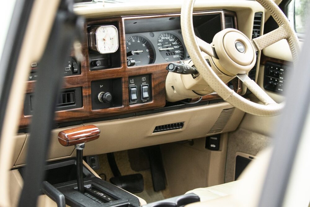 ワゴニアのスポーツモデルという立ち位置でスタートしたチェロキー。2代目となるXJ型は1984年にリリースされ、日本でも大ヒット。上級グレードであるリミテッドで、この年式ならではのベージュの内装もポイント。