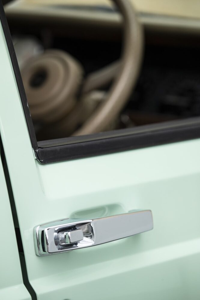 現在ではなかなか見つけることができる純正のクロームメッキのドアハンドルを運良く発見。これだけでレトロな印象になるから不思議。