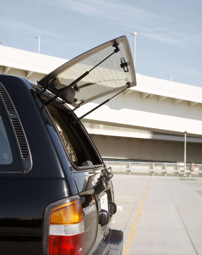リアのガラスを外から開けることができるため、ちょっとした荷物の出し入れをする際にドアを開けずに済む。ダンパー付きなのもポイント。