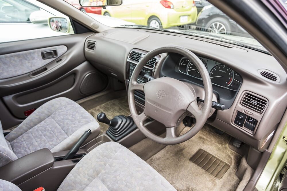 流麗なフォルムの4ドアピラードハードトップとして1990年に誕生したプレセアの2代目。取材時は低いルーフによるスタイリングのよさとゴージャスなライトグリーンのカラーリングに、見た瞬間カメラマンともども思わずニッコリ。室内は’90年代のクルマ特有の質感と色味だが、このプレセアにはライトパネルがブルーに発光するマリンブルーメーターを採用。シートにはおそらく当時物のレースカバーがかけられ、フロアマットはプレセアのロゴ入りの純正品。5速MTなのも魅力。そして価格にも注目。38万円