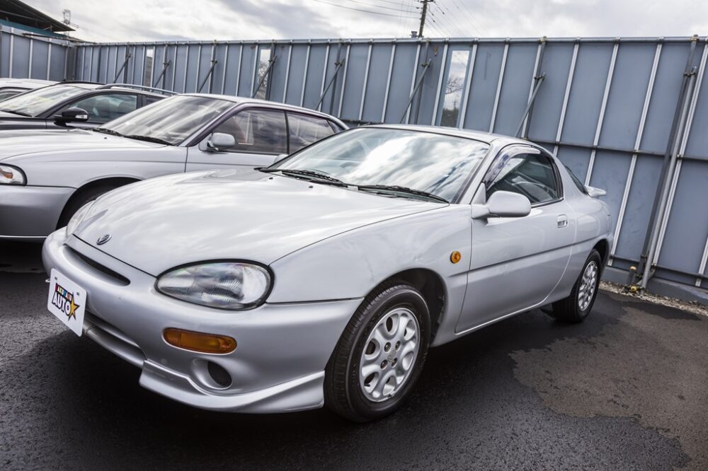 ’89年に多チャンネル化を行ったマツダ。ランティスやユーノス500、オートザムAZ-1など、この時期のクルマはどれも個性的な物ばかり。今も人気のロードスターだって、元はユーノスで販売されていた。そんな個性派軍団の中の1台がユーノスプレッソ。イマドキのハッチバックスタイルとは異なるスタイリングが魅力の1台。1991年の登場時は世界最小のV6エンジン(1800㏄)ということで話題にも。ちなみにこの個体は直4の1500㏄エンジン搭載モデル。修理歴ナシのワンオーナー物という極上物。59万円