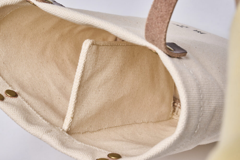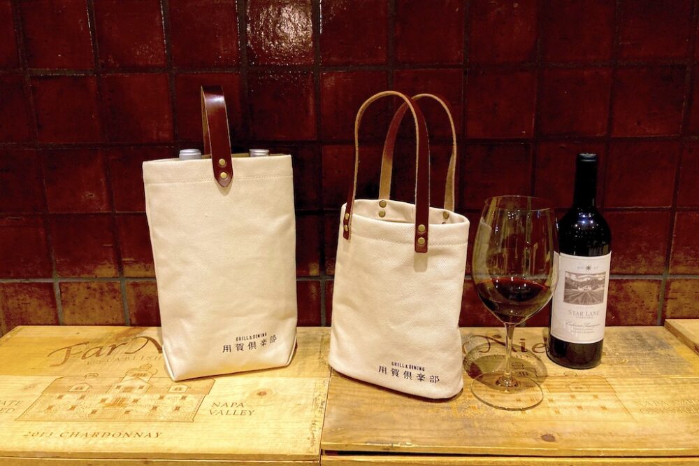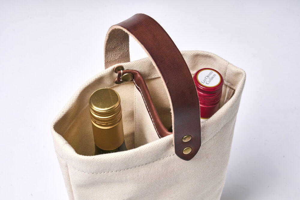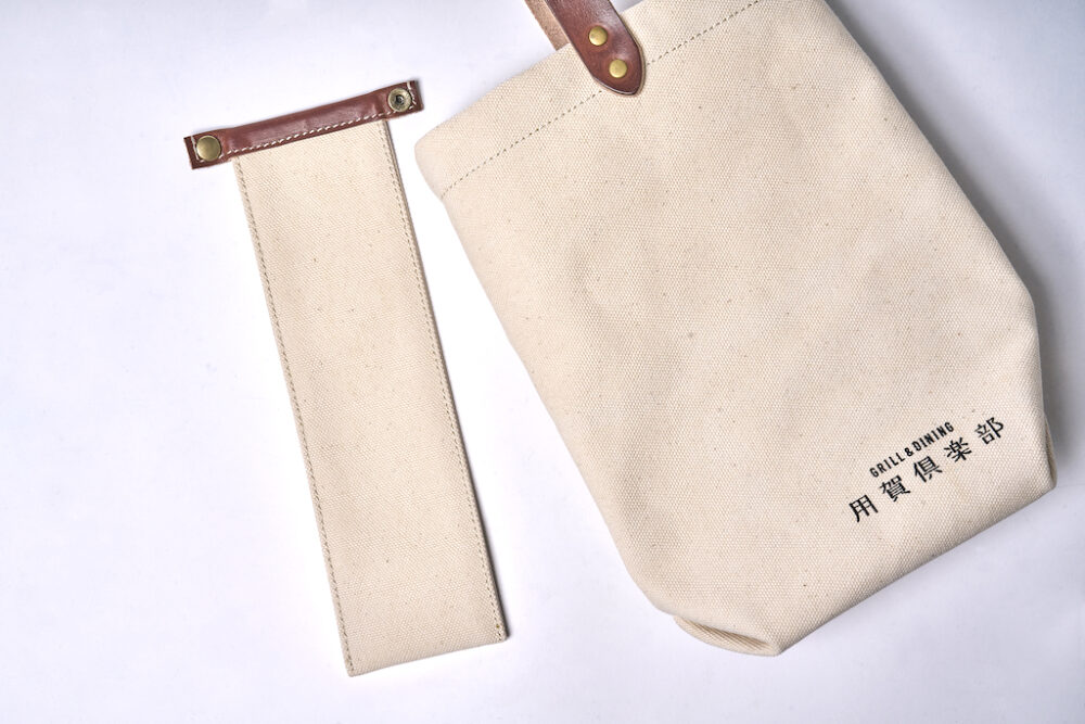 製作を請け負ったのはSturdy Luggage Supply。横浜で職人たちがハンドメイドのこだわりのバッグを展開するブランドで、そのクオリティの高さはいうまでもない。毎日使うことも考えて、使い込むことに風合いが出るキャンバスとレザーを使って製作される。ワインボトルを入れる機能はそのままながら、ミニトートバッグとしても使えるデザインで仕上がっているのが特徴になっている。
