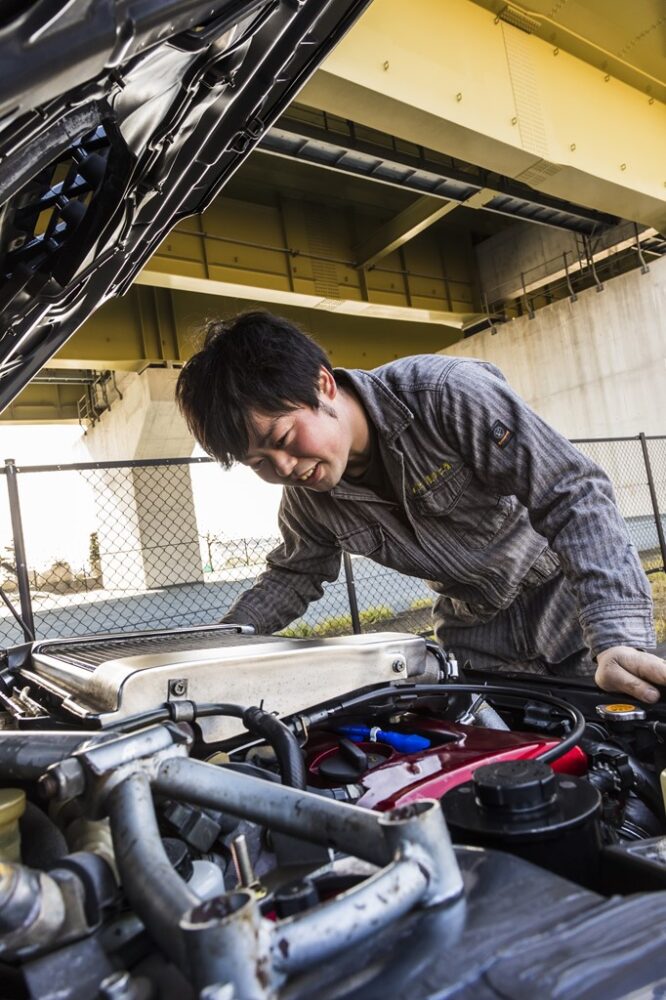 この個体は、本物の技術をもつ頼れる旧車専門店「水上自動車工業」でメカニックを担当する河原塚さんの愛車。若い彼が、なぜこの時代のクルマを選んだのだろう。