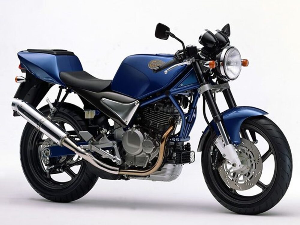王道のシングルカフェレーサー! ジレラ・サトゥルノと同じ開発者であるのは有名な話。高回転の油冷エンジンと倒立フォークを採用し、コーナリングが楽しいシングルスポーツとして人気に。