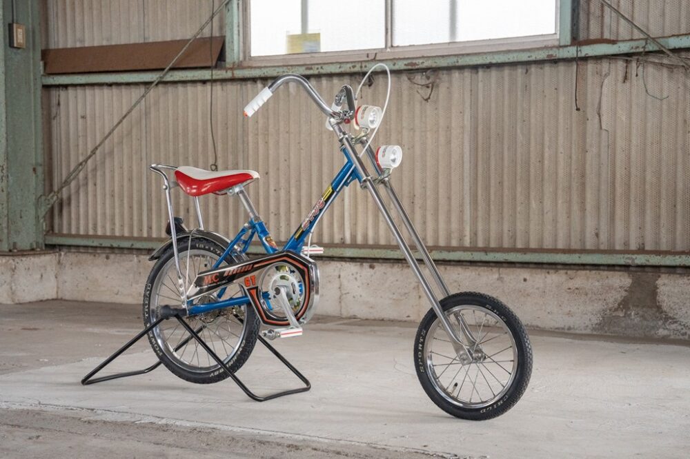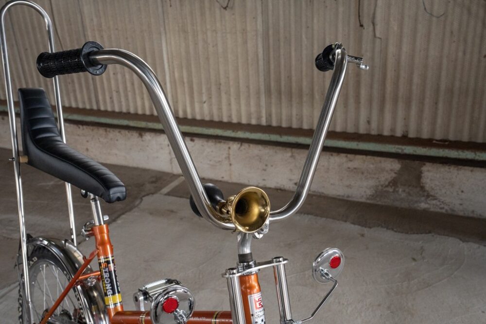 「当時子供が跨ぎやすいフレーム形状で男の子向けにGTという自転車があって、日本のメーカーが販売していたハンドルやシッシーバーなどのカスタムパーツを使ってできたのがGTカスタムです。また、ロングフォークをつけた自転車のチョッパーも存在しました。想像ですが、鉄工所に勤めるお父さんや親戚がいる子供がお願いして、パーツを作ってもらったスタイルなのではないかと思います。