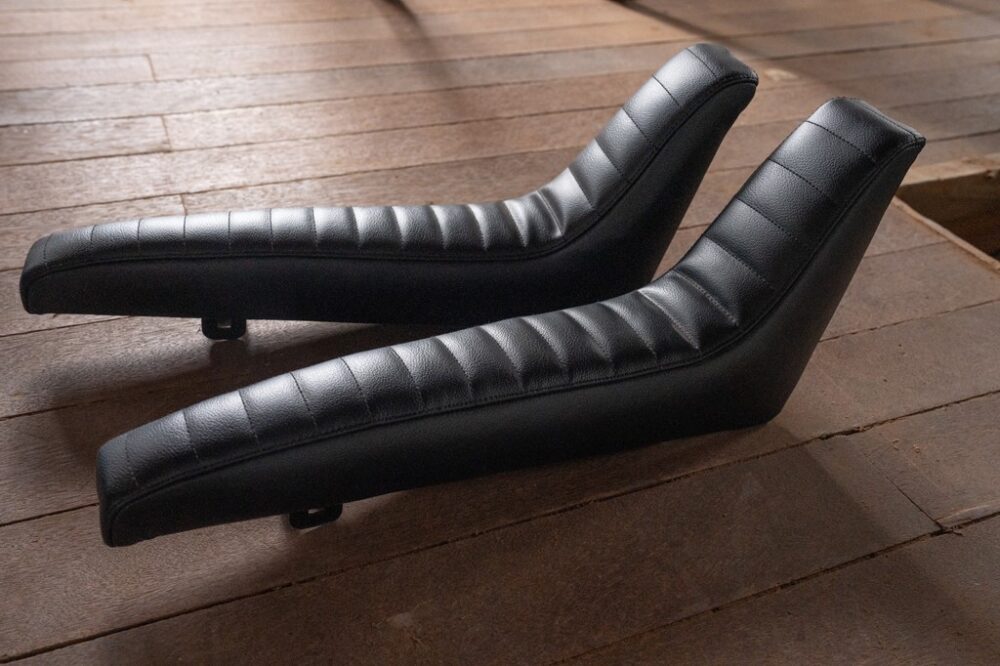 小さなフレームをロングフォークでカチ上げたチョッパーは、当時のデカールを残したヤンチャな一台。’70sヴァイブス漂うデュアルヘッドライトなど、通好みなパーツチョイス。