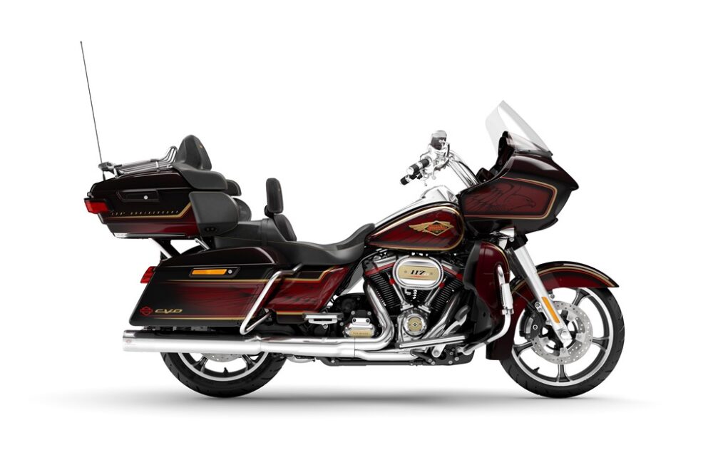 最も注目すべきはゴージャスなCVOに加え、限定カラーモデル6種類が登場する創業120周年アニバーサリー。赤をベースカラーとした「エアルームレッドフェード」という特別カラーを採用し、タンクメダリオンは1933年のイーグルフライトマークとその翌年のフライングダイヤモンドを組み合わせたスペシャルな仕様だ。120周年を迎えた今、メーカーが’30sをモチーフとした真意は不明だが、常に歴史を重要視してきたハーレーらしい演出と言える。