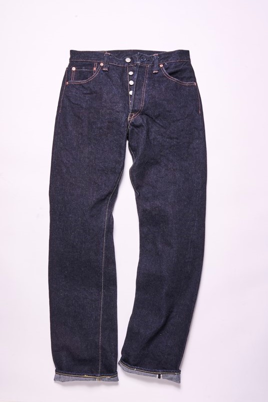 フロント片ポケットファーストモデル。オリジナルレシピのデニム生地は19オンスで、特有の凹凸やスラブ感が表現されている。普遍的なデザインであるため、流れゆくトレンドに左右されることなく、長くエイジングを楽しめる。2万8600円
