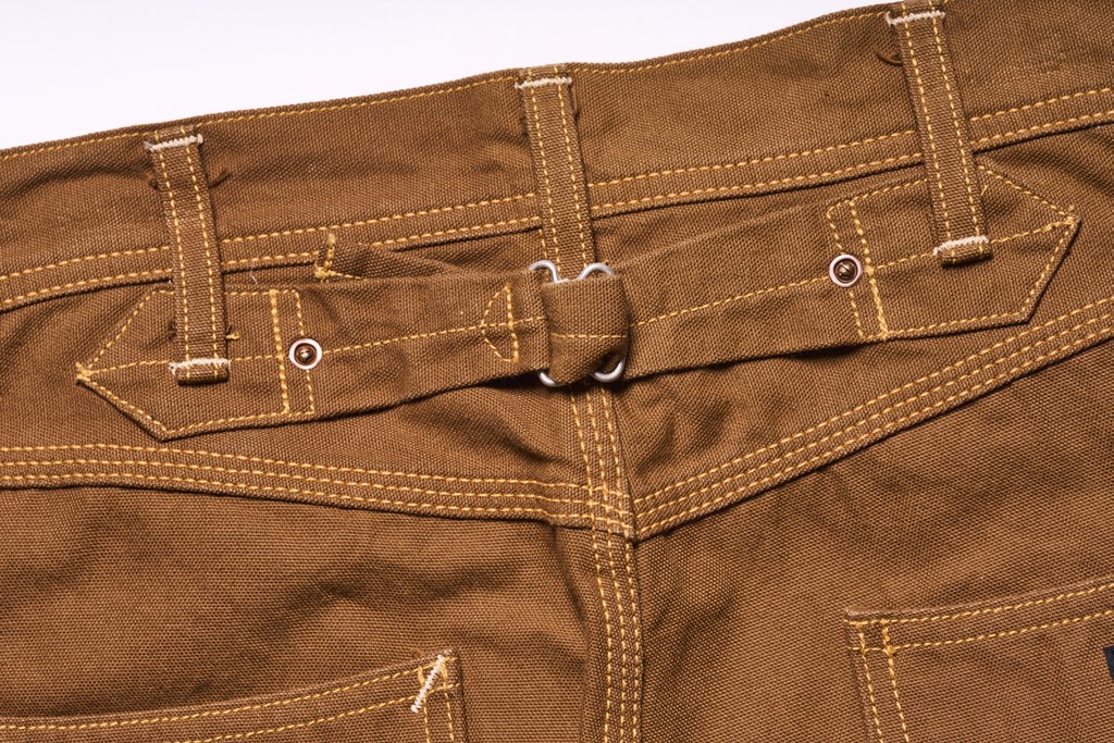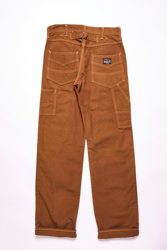ジャケット同様、ブラウンダックを使用したダブルニー仕様のワークパンツ。ベースとしているのは1940年代のヴィンテージで、裾にかけてテーパードを効かせるなど、モダナイズされている。ヒップポケットはやや大きめで収納力も高く、デイリーに着用しやすい1本、2万2000円